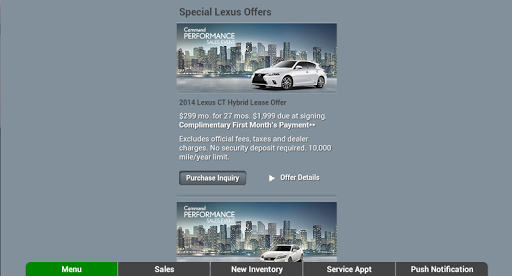 This app provides instant access to inventory, the latest incentives, rebates, and a full multimedia brochure. This app uses push notifications to schedule service appointments, access specials, coupons, dealer contact info, and more…