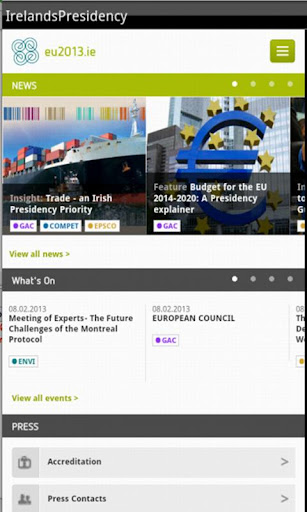 This app will provide users with information about activities planned for the six month period along with an event calendar, contact details and even a quiz so you can test your knowledge of the Irish Presidency, the Joint Research Centre, famous Irish scientists and Irish culture in general.