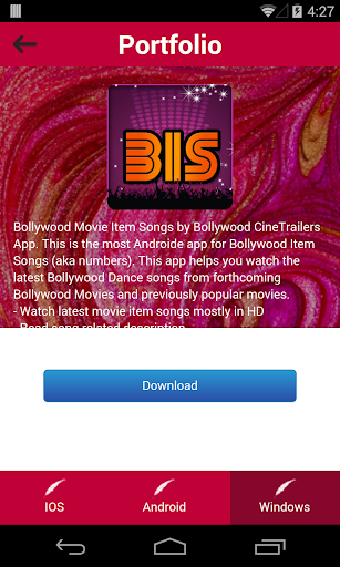 This application will be helpful to Sales and Presales team to give ISHIR Mobility team work demo to clients.Its describe about different types of mobile app on which ISHIR worked on. There are there different tab for IOS, Android & windows app separately, Each tab containing the apps of its own. on Clicking upon any App Icon you will get the full description of that app & option of download link for respective App Store.