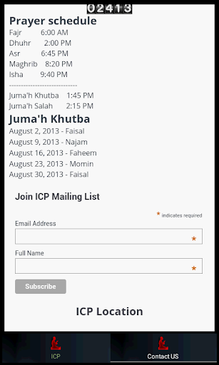 The Islamic Center of Pflugerville (ICP) App was developed for the Pflugerville community. Using it the user can: