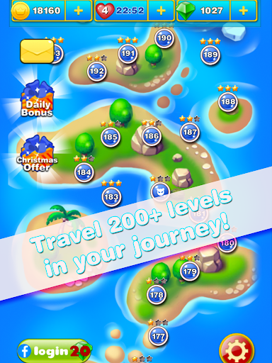 Island Quest (FREE Match 3 Game) is totally FREE to play, with many in game items like boosters, extra lives, and much more to help you. Starting items are plenty and have a shorter cool down time! You can connect to Facebook to require more lives from your friends and compare each others scores for competitive fun!