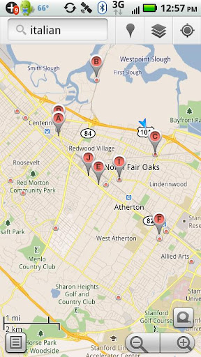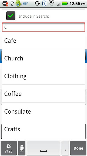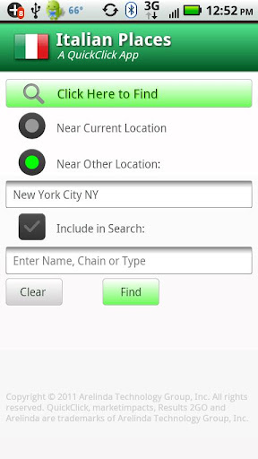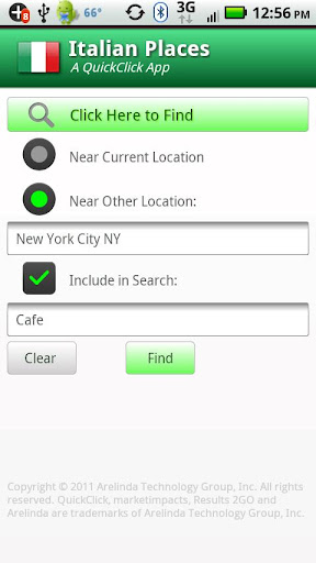Types of Italian places are pre-loaded to assist you when using the optional name search.