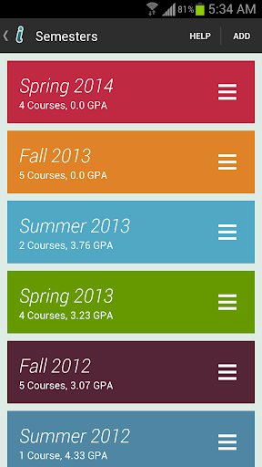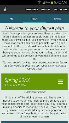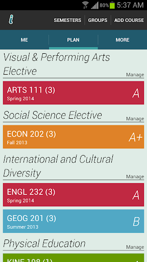 - Organize your courses with groups and semesters in order to better match the structure of your degree plan.