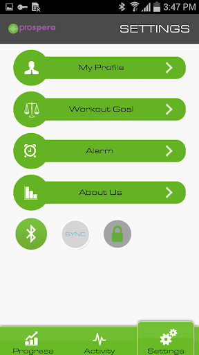 This app is used with JBand Trackers to track and graph your fitness progress for steps, calories, distance traveled, and sleep quality as well as personal fitness goals. Once the app is downloaded and your BT is on, open the app and press the large sync button to join your fitness tracker module and app together. Once the sync is complete you can hit the skip button at the bottom right of the screen to move to the profile menu and set up your personal fitness information (make sure to hit save at the bottom of the screen). If you need to re-sync later on you can do so from the setting menu accessed by hitting the settings tab at the bottom right of the app.. The Progress and Activity tabs at the bottom of the app show your fitness records in measurements and percentages of your goals as well as graph forms. Data can be viewed by day, week, month and year. You can set your personal fitness goals, alarm, and other settings in the settings menu.