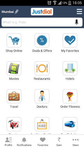 * Get popular choices for Restaurants, Movies, Doctors, Chemists, Hotels, Taxi Services, Car Rentals, Repair Services and much more