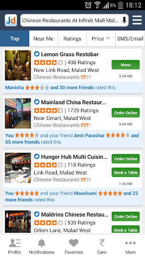 JD app works as a one stop solution for all your daily needs - whether it is information about Movies in Cinema Theatres your area, Restaurants next door, Hotels, Doctors, Electronics Stores, Taxi Services, Florists, Airlines, Resorts, Real Estate or as simple as the nearest ATM, Just Dial has it all. Above all, you get access to millions of ratings and reviews by Justdial users which helps you make an informed decision.