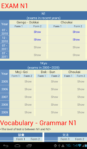- N1 exams in recent years: with 8 tests, and 2 forms: Gengo-Dokkai, and Choukai