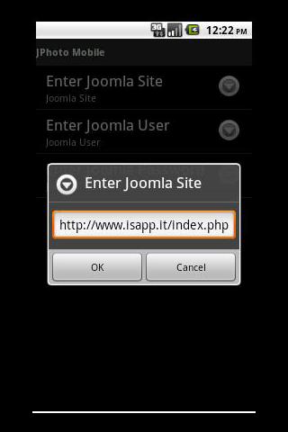 JPM is an Android application which requires a Joomla! component to be installed on your Joomla website; first of all you have to download the Joomla JoomPhoto Mobile component http://www.isapp.it/en/jphotomobile-for-joomla.html to your Joomla server and then install the JPM android application on your mobile phone.