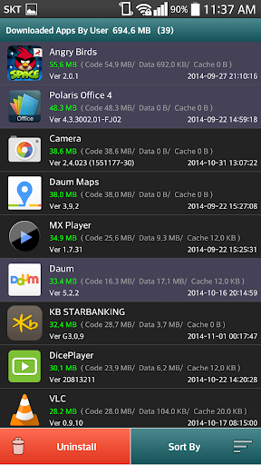 √ Display downloaded apps by user except app-updates, pre-installed system apps for actual deletion.