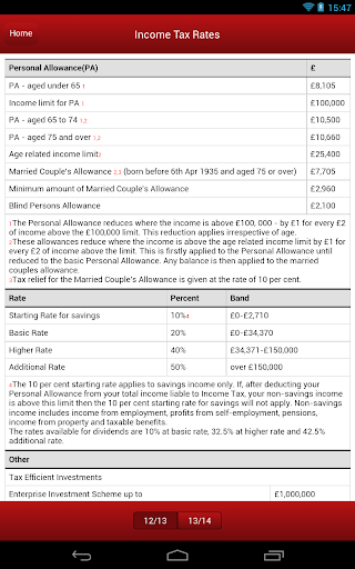 A nice tax tips area gives you categorised tips and ideas on how to reduce your tax bill and the app also includes handy tax calculators, together with news, events and services areas.