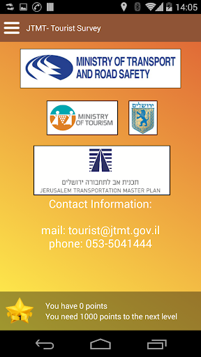 This App is for the use of the tourists arriving to Israel, who will take part in a transportation survey.
