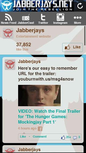 Jabberjays.net is proud to bring to tributes the ultimate destination for Hunger Games fans around the world. Our outstanding and talented staff works constantly to ensure that in addition to getting the latest news, our fellow tributes have a welcoming environment in which to interact with other fans of The Hunger Games.