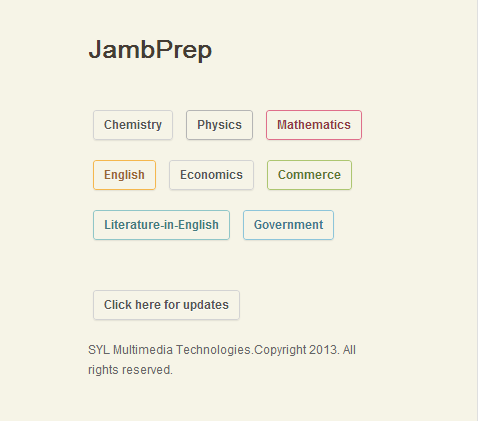 The Jamb Examination Preparation Kit otherwise known as JAMB Prep is a Computer based interactive multimedia software, designed to prepare Post-secondary students seeking to gain admission into Nigeria University an opportunity to practise in a computer simulated examination condition close to what is obtainable in the real time examination. JAMB Prep is composed of past examinations questions from JAMB compiled over a period of ten years of the JAMB Examination.