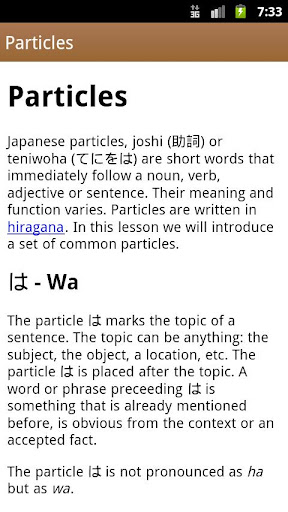 Japanese Class contains a complete written offline Japanese course, together with interactive vocabulary and grammar exercises.