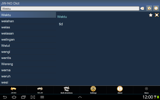 This is Javanese - Norwegian and Norwegian - Javanese dictionary; Kamus Jawa - Norwegia dan Norwegia - Jawa / Javanesisk - Norsk og Norsk - Javanesisk ordbok. The Application works OFFLINE and does not need the internet connection.