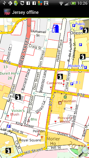 Offline map of the island of Jersey, Channel Islands for tourist & business visitors. Download before you go and avoid expensive roaming charges. The map runs completely on your device; display with pan and zoom, routing, search, bookmark, everything. It does not use your data connection at all. Switch your phone function off if you want to! NSA proof!