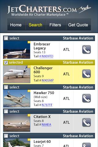 The JetCharters.com application makes arranging private aviation easier for retail charter consumers by allowing one click access to aircraft near their current location, or by searching cities or airports. Users also have instant access to discount one way flight availability and the latest industry news.