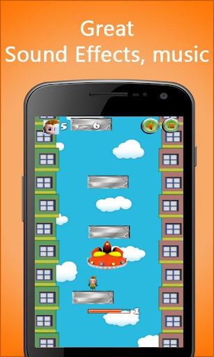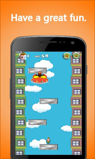 时髦的男孩出来了。随着他的疯狂喷气背包。他已经开始横行整个小镇到处飞。时髦的男孩点燃了喷气背包和飞在天空。他的传送插座具有一定的故障,因此它不能长时间飞行。所以,每一个时髦的男孩点燃喷气背包的时候,他需要有一些地方一段时间后休息。有被布置为时髦的男孩这么多的金属平台上。点击屏幕上点燃的喷气背包,并飞上上层平台。