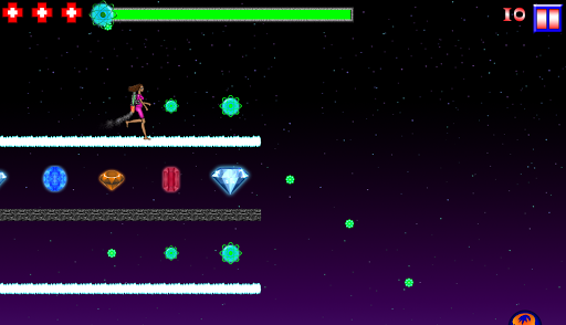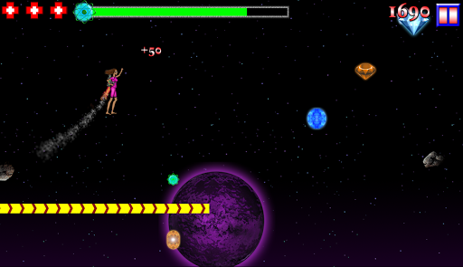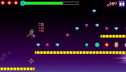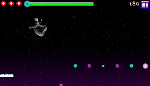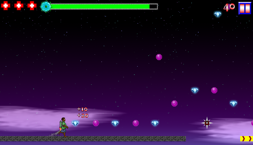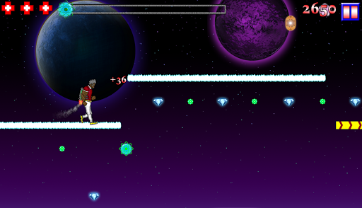 Touch the right side of the screen when you are on a platform to jump. Touch and hold the left side of the screen to activate your jetpack and fly. Pick up green fuel orbs to replenish your fuel because if you run out you’ll be out of luck.