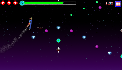 Take flight as the Intergalactic Ninja Pirate with his high-tech jet pack and navigate your way to the top of the games global high scores list. Be bold and fearless because it won't always be a joyride. It will take tons of courage to conquer the skies with nothing but your quick wit and a jet pack strapped to your back. You just might have what it takes to jump to the top. Warning: This Game might be super addictive.