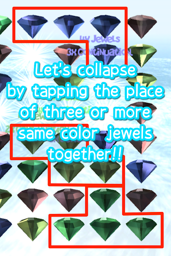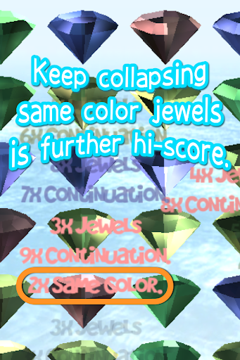 Let's collapse by tapping the place of three or more same color jewels together!!