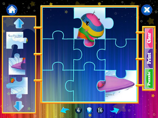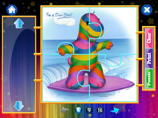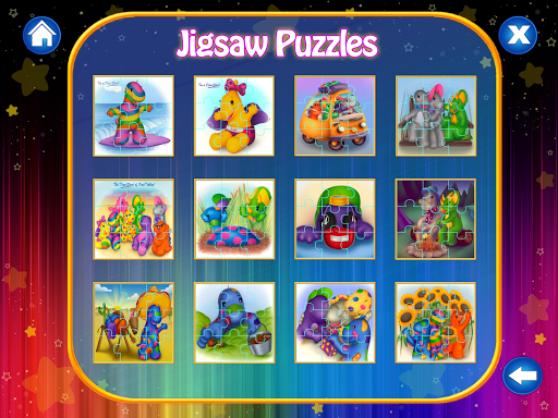 Paint-It (24 pictures), Memory Match (24 levels), Jigsaw Puzzle (12x3 levels), Let’s Count (10x1 level), 123’s Please! (10x5 levels), ABC’s Please! (26x6 levels), Dino Drag’n’Drop (10x1 level), DB Theme song, Chalk Board, Screen Savers (12), Dino-Buddies Club, Newsletter, The Dino-Buddies Story, and many, many more options