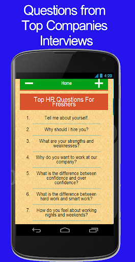 This application contains 30 + most asked questions ( for freshers ) with their best answers :-