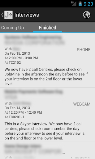 - Enhanced interviews: Interviews have tabs showing the incoming interviews first