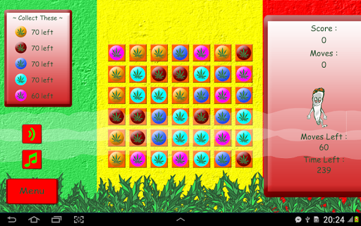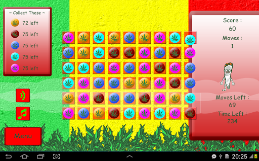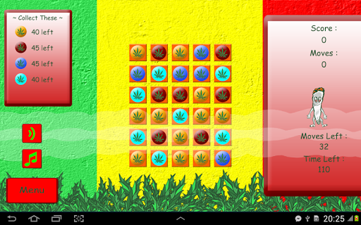 Our cool marijuana game contains 5 difficulty levels. Each level contains 5 different stages.