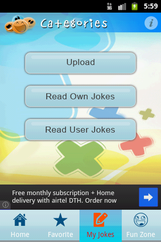 App have categories like Dosti, Husband, Wife, Judge, Kanjus, Doctor, Short Jokes, Adult Jokes, One Liner, Tourist etc.