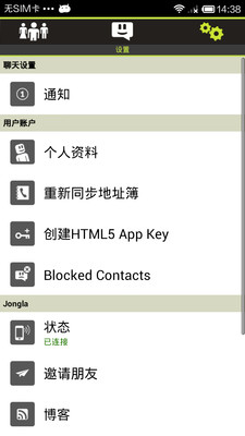 用户状态:使用Jongla时你可以看到好友在线还是离线。还可以看到好友上一次登录Jongla的时间。甚至还可以看到好友回复时“正在输入”的状态。