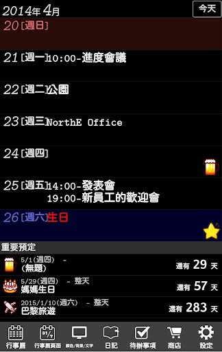 ・重要的活動可以用紅色顯示、可以變更每天的背景顏色等功能、能幫助您一眼就可以掌握每天重要的行程。
