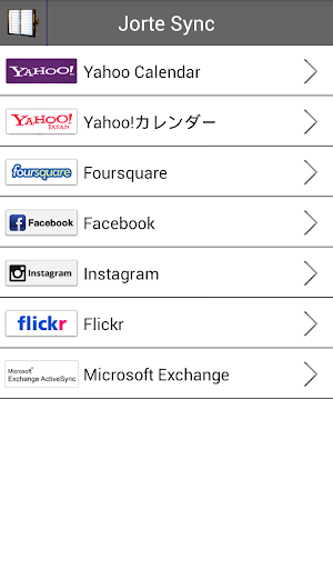 Launch Jorte Calendar and select the service you want to use (Yahoo! Calendar, Facebook, Instagram, Foursquare, etc.) from the [Calendar] list.