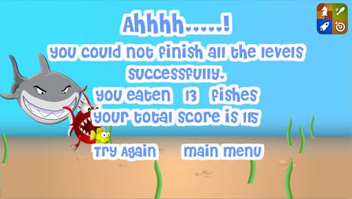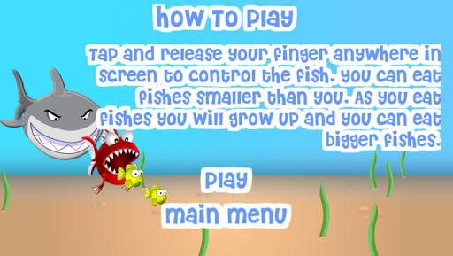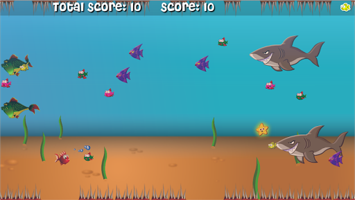 While moving into the sea, if the fish is hitted by another fish, if the other fish is smaller than the hero fish, the hero will eatup the fish and gets bigger so that the hero can eatup bigger fishes. And if the other fish is bigger than the hero fish, the hero will loose life.