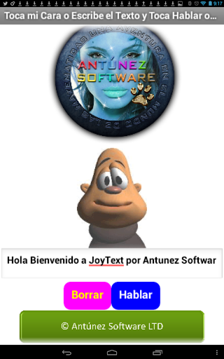 Habla cualquier texto que le escribes en su caja de texto y lo pronuncia dando clic en el botón Háblame o agitando el celular. Es útil para bromas, para leer mensajes con copiar y pegar, para pedir perdón, para regañar, para ofrecer disculpas, para que le digas sus verdades a la gente o para invitar a salir o decirle algo hermoso a una chica que te gusta y no puedes por tu timidez, porque tu lo escribes y el lo habla. Puedes hablar ahora al dar clic en el botón Borrar.