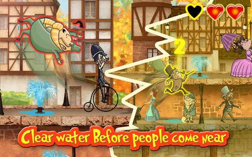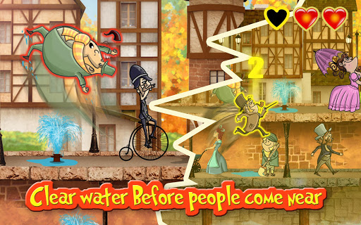 Save the pedestrians from falling. Move the sweeper around by tapping to sweep the water puddles. Pedestrians will come in numbers and increasing speed to test your reflexes.