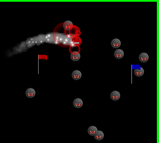 In order to capture a flag, just place a finger on the screen in order to move your character in that direction. Avoid the monsters while your character is blue. When you have captured enough flags, you will be presented with a red flag. Capture this flag to go into insane mode! While your character is glowing red, he will be faster and can kill enemies by running into them. Capture flags and kill enemies to earn points!