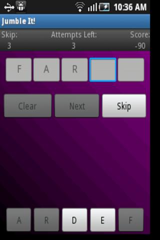Playing the game is simple. Each word is shown to you in a jumbled form. Simply assemble the letters together to form the correct word. You have 3 chances to get the word right before you lose points. Alternately, you can also skip and move on to the next word.