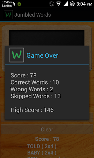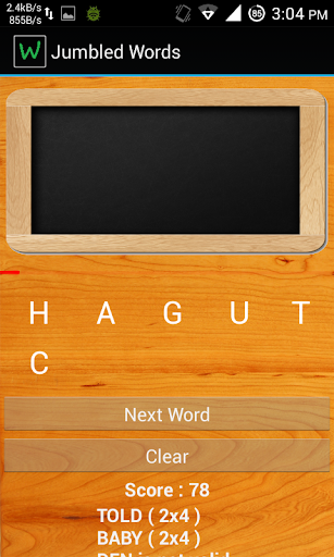 Solve the jumbled words to find the proper English word. A popular English word will be given in a scrambled manner or anagrams. You have to figure out the word as fast as possible. You will be given 2 minutes time and you have to identify as much words as you could. Your score increases as the size of your word increases.