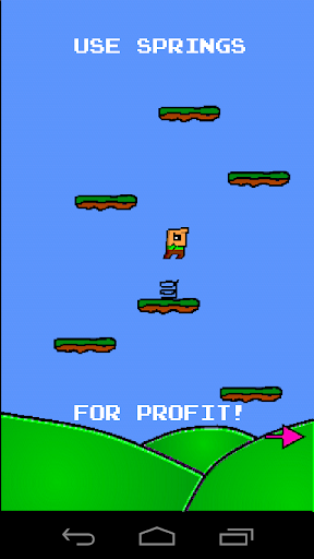 -> Collect springs, jet packs and more to jump higher but watch you don’t fall.