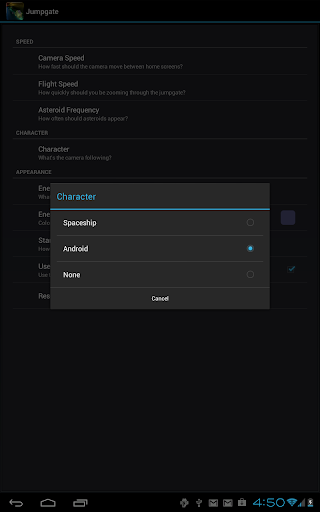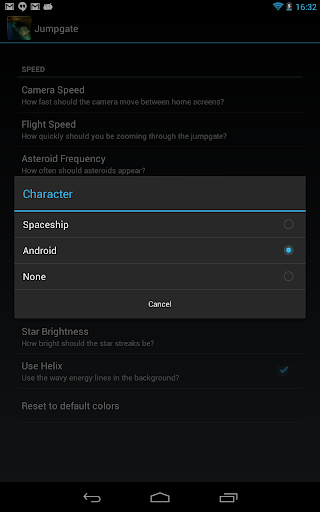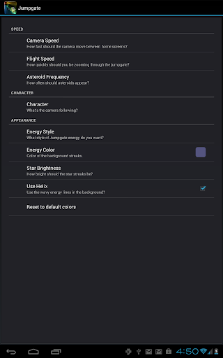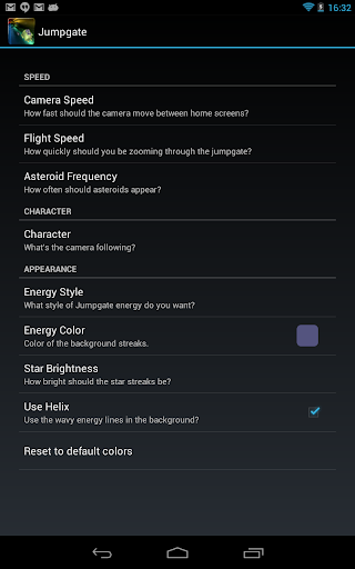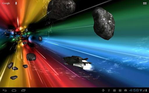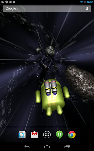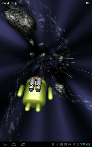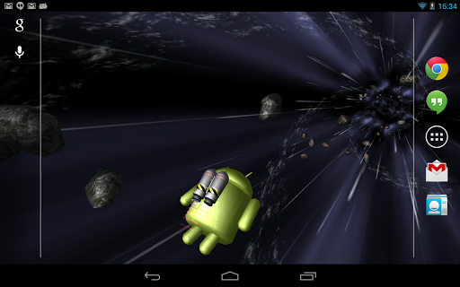 Soar through space with your Android friend! Stars and asteroids whip by as fast as his jetpack can carry him! Double tap to say hello, do a barrel roll, or enable turbo boost for a burst of serious speed -- get different actions depending on where you touch the screen!