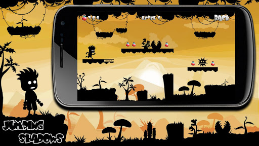 Jumping Shadows - dynamic arcade game with simple controls and a variety of challenging levels. The game is made in a similar style to the badland, oscura and limbo games, but has a simple gameplay. You control a funny little man, and avoide a variety of obstacles in the form of thorns, spines, and other dangerous items. Control of the game is simple, you just need time to click on the screen to the character jumped another hurdle. All levels of the game, which is more than 100, divided into three categories of difficulty. If the levels of the first category Beginning will seem simple, the levels of the other two categories can take away from you is not enough time to complete.
