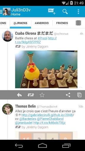 The twitter client jumy lets you see your timeline, private messages and favorites in a really natural way. Don’t miss any tweet of your favorite actress by keeping an eye on her timeline, after having added it to your personalized feeds.