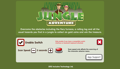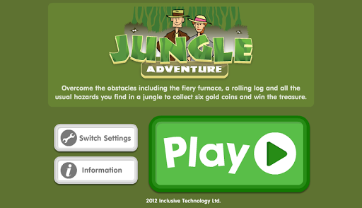 Collect six gold coins to win the treasure. An easy to play touch and single switch accessible game involving watching and waiting for the right moment to overcome the obstacles including a fiery furnace, a rolling log and all the usual hazards.