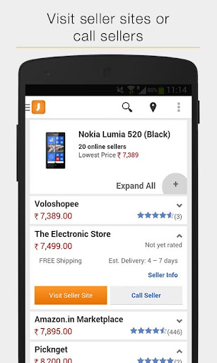 * Visit seller site, or, Call seller: Directly visit the respective seller site from the app or call sellers