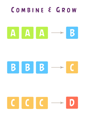 Tap the adjacent tiles with same number, and they will pop up. Tap again, they will merge in the position you tap. Try to move from all the Alphabets till Z!