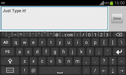 - FS button: change the layout to Fullscreen mode. Sometimes, usually on small devices using landscape, you can't see the text you are typing because of lack of screen space, the Fullscreen mode extracts the text in a new editor so you can type and see what you are typing.