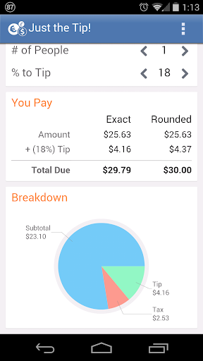Just the Tip is the most elegant Tip Calculator on the Google Play Store. No dirty napkin interface, no wheels, dials or sliders. Fast, Simple, Useful… It’s Just the Tip.