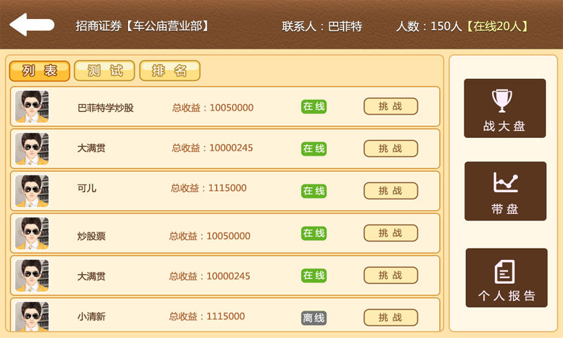 K线学霸使用真实A股历史行情数据,包括标准买卖和卖空机制。用户既能自我学习提高K线技能,还能与大盘或其他股友进行PK竞争,每局比赛只需2分钟,大众专区,广大投资者可以与指数或真人PK,在好友圈互动交流;电视专区,检测您在全国K线牛人中的排名,参与竞猜,不但有机会赢取大奖,还能检测你挑选基金经理的能力;券商专区,方便证券公司和股民交流沟通。高校专区,提升教学质量,优化教学效果;不论你是什么职业,不论你的水平如何,在《K线学霸》中,总有一个场次适合你学习,赶紧来体验吧!