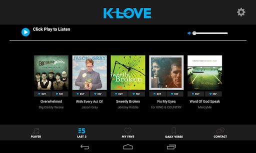 K-LOVE plays Positive, Encouraging music featuring artists like Chris Tomlin, Third Day, and TobyMac. K-LOVE is a not-for-profit, listener supported radio station dedicated to sharing the hope of Jesus through great music.